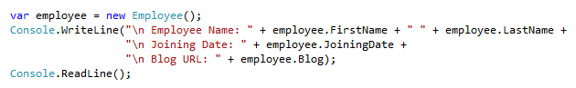 For quite a long time, it was asked by the developers to initialize or set default values to auto properties where it has been declared. Earlier to C# 6.0, we had to make them as full property with a private variable to initialize at the time of declaration. But, time has changed now. You don’t need to create the full property in order to initialize them. Less code, less chances of bugs and better chances of productivity. Isn’t it? A typical auto property looks similar to this: